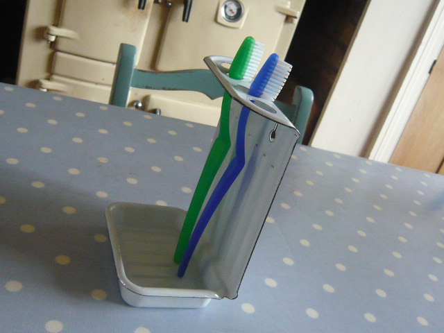 VINTAGE FRENCH ENAMEL TOOTHBRUSH STAND