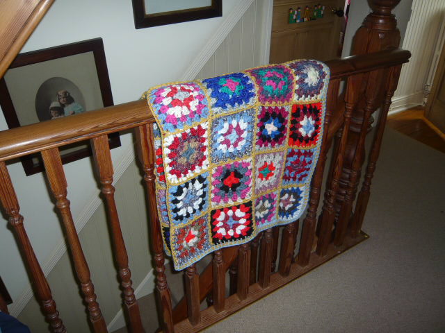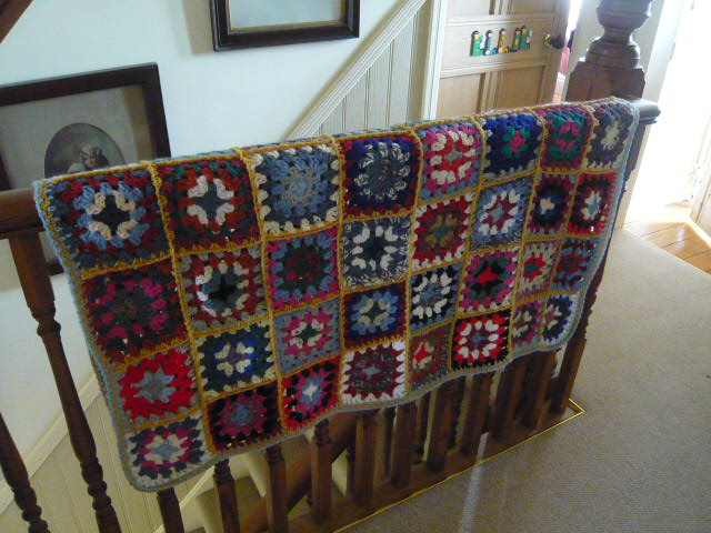 An adorable vintage granny blanket of squares of mulit design and multi colours