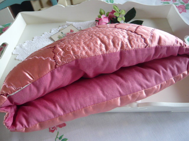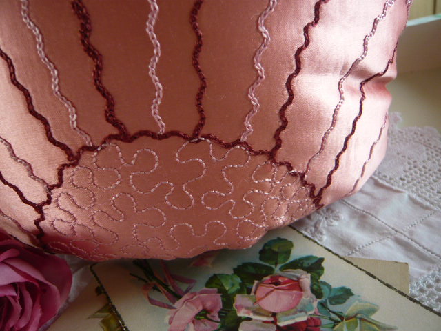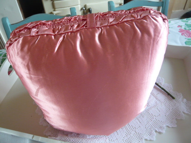 Stunning pink satin fabric with embroidered sunburst design to the front....very pretty folds to the top and plain satin back