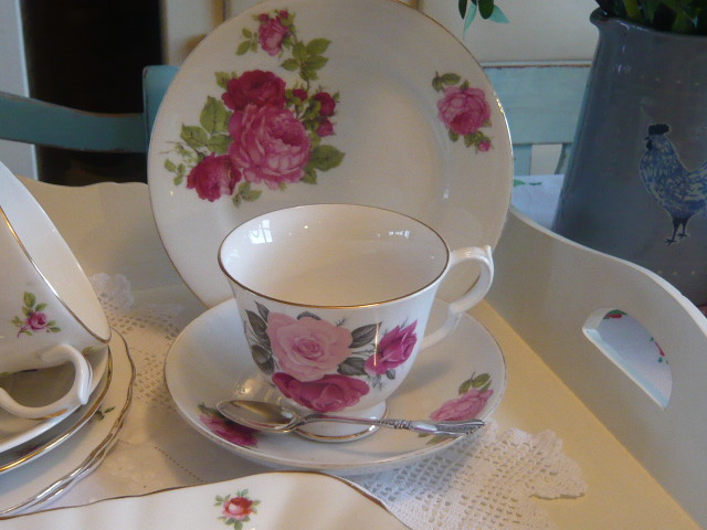 Stunning vintage tea set for your vintage tea times....this is just sooo pretty, a mix-n-match set an abundance of rosebuds and roses in all shades of pinks !!