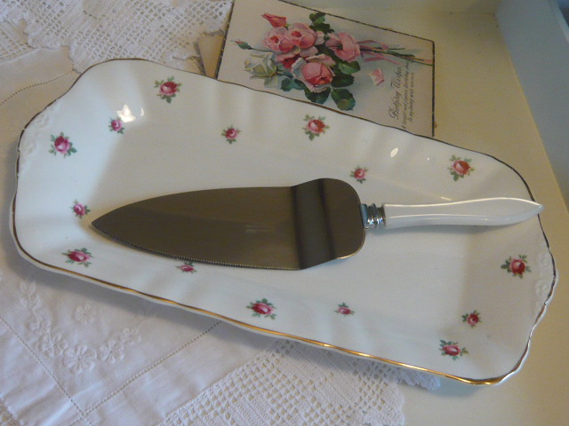 Comprises oblong cake/sandwich plate, 4 x side plates, 4 x saucers, 4 x cups