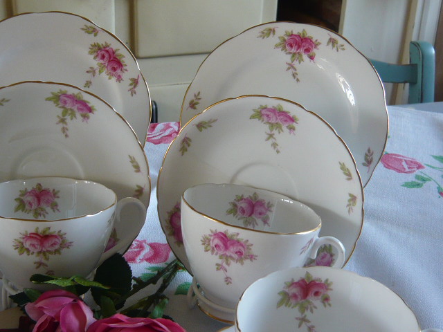 lovely set to match with other rose patterned china, I have endless sets of side plates, dinner plates, teapots etc etc and if they havnt made their way to the website yet can be viewed in my ebay shop at www.rubytuesdaysvintagehome.co.uk