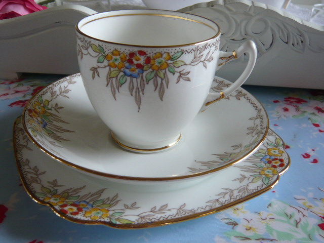 Stunning vintage tea set for your vintage tea times....this is just sooo pretty a totally stunning set by Standard China with handpainted flowers in yellow blue and orange would certainly brighten up your breakfast table