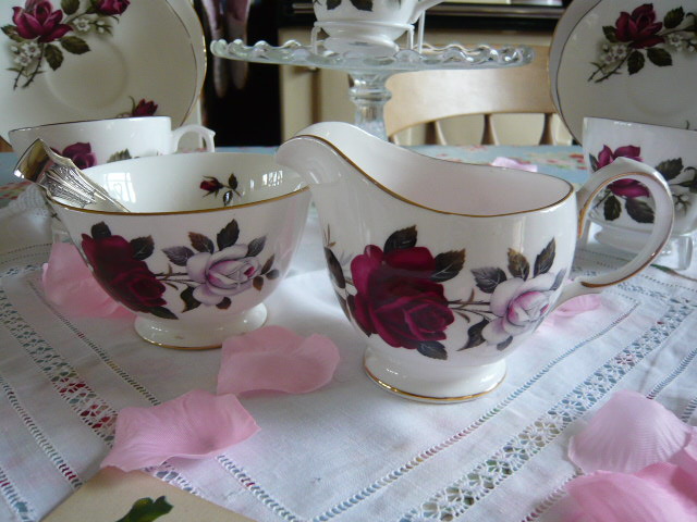 Stunning china tea set for your vintage tea times....this is just sooo pretty with deep red roses and ditsy white flowers