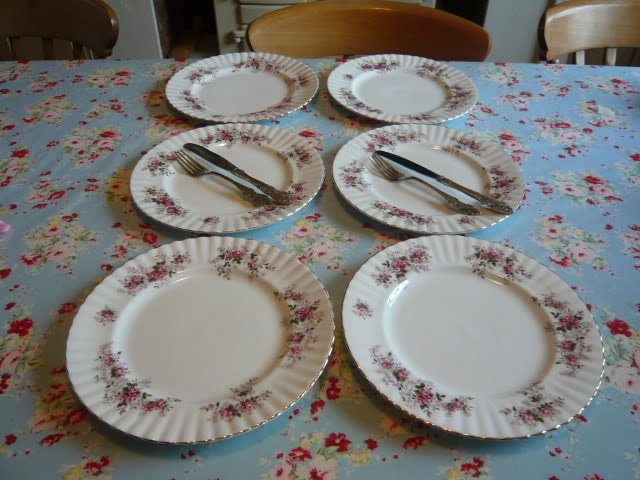 Very pretty set of 6 plates for the dinner table, lovely to use for a vintage themed wedding or special occasion or with christmas just around the corner how about this lovely set