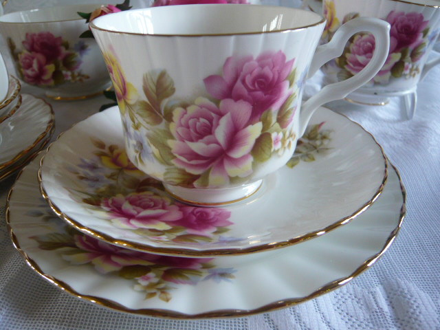 ROYAL STAFFORD PINK & YELLOW ROSES TEA SET