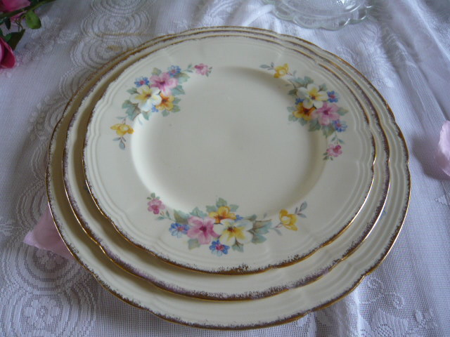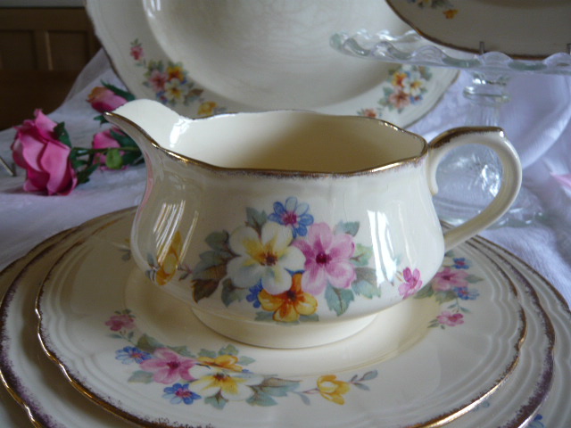 Very pretty vintage dinner service with delightful flowers in pinks, lemons and blues lovely for display on a dresser or nice to keep for use at special family dinners with christmas just around the corner this is just what you need......