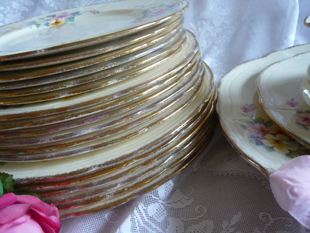 then 6 of each of dinner plates at 10" / salad or side plates at 9" / tea or cake plates at 7 3/4" - also has gravy or sauce boat
